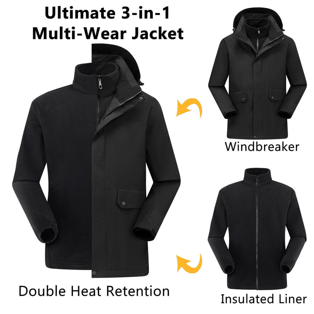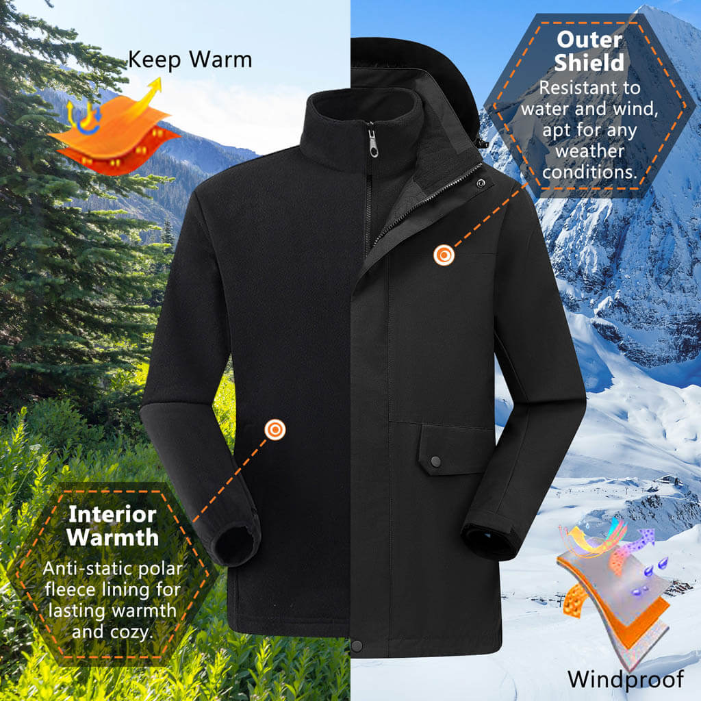3-in-1 Flexibility for Every Season: Whether worn together or separately, this mid-length hiking jacket adapts to changing weather and activity levels. The soft inner fleece provides cozy insulation, while the outer shell shields you from rain and wind. Together, they deliver all-season protection without the bulk, making this the ultimate thigh-length outdoor jacket for women on the move.