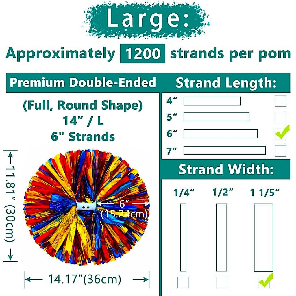 Affordable with Premium Feel: Despite their budget-friendly pricing, these budget cheerleading pom poms offer great shake, shine, and durability for practice, school spirit, or sideline use. 🎉